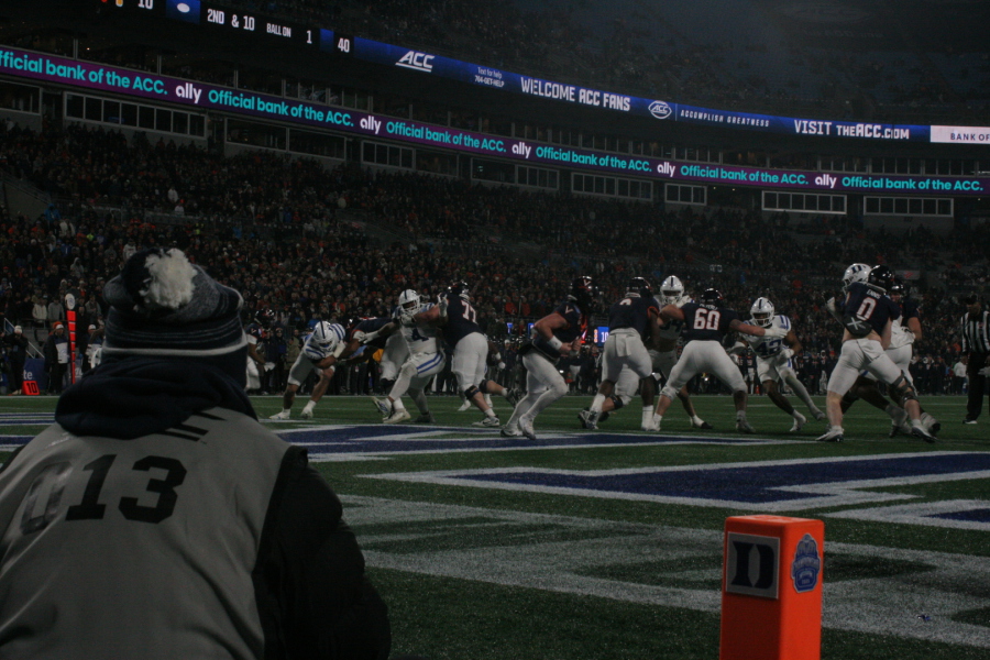 All the players have worked hard for this chance and excited about the opportunity to play for the title. Virginia went in defense and it didn’t go as planned. Both teams burned timeouts early in the quarter and after an offsides by Virginia to keep the drive alive on 4th down, the Blue Devils capitalized and scored on the 16th play. The TD pass from Darian Mensah to Jeremiah Hasley gave the first score of the game to Duke, 7-0.